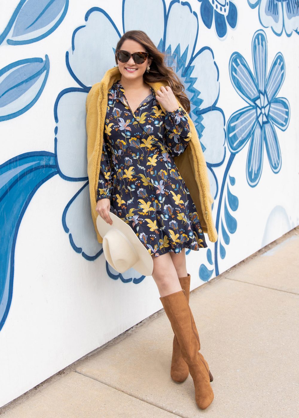 Dress: LOFT Fall Floral Dress {c/o} // Outerwear: LOFT Faux Shearling Coat {c/o}