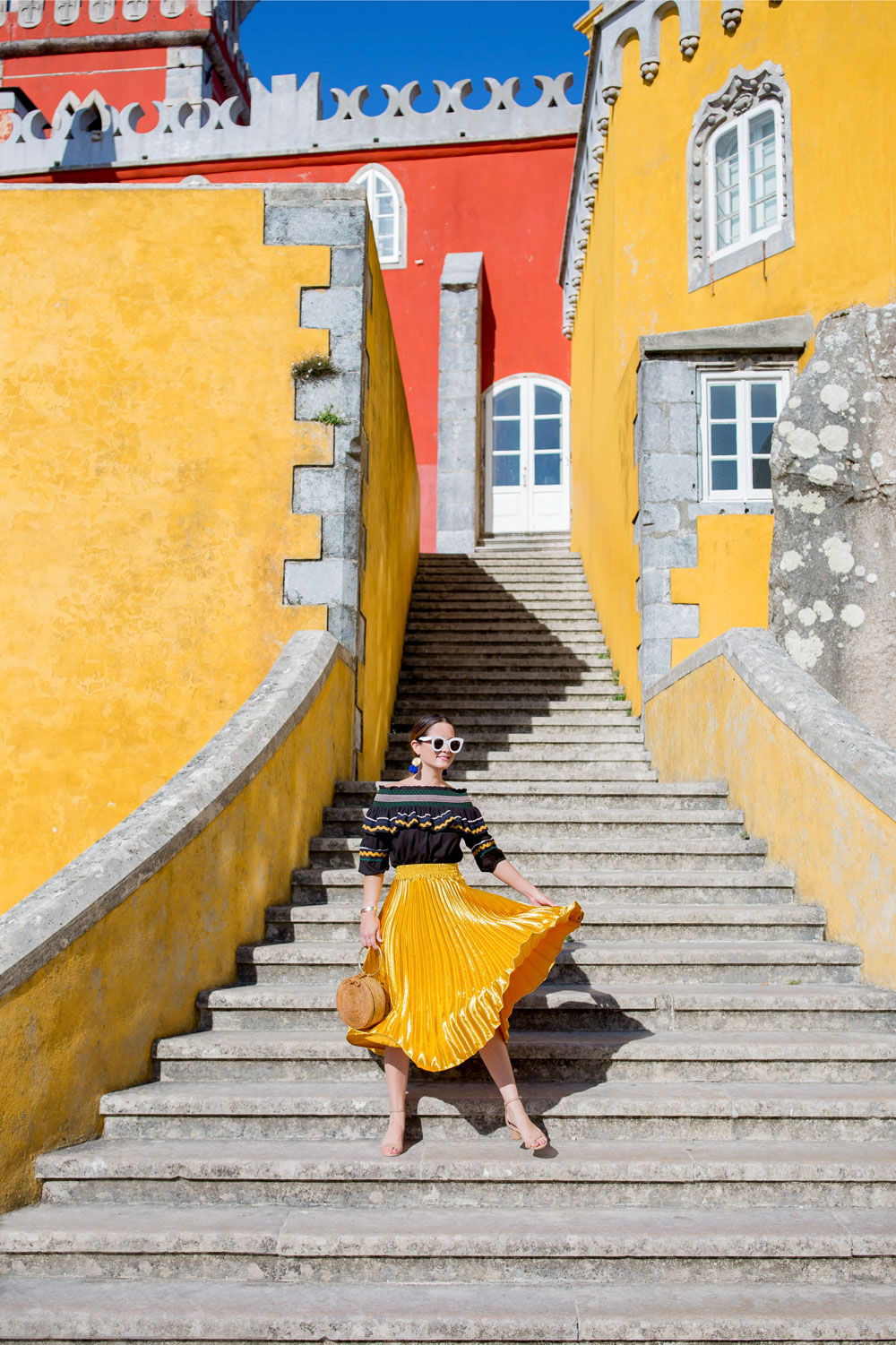 Skirt: Yellow Metallic Satin Pleated Skirt {also available here} // Top: Off Shoulder Ric Rac Top