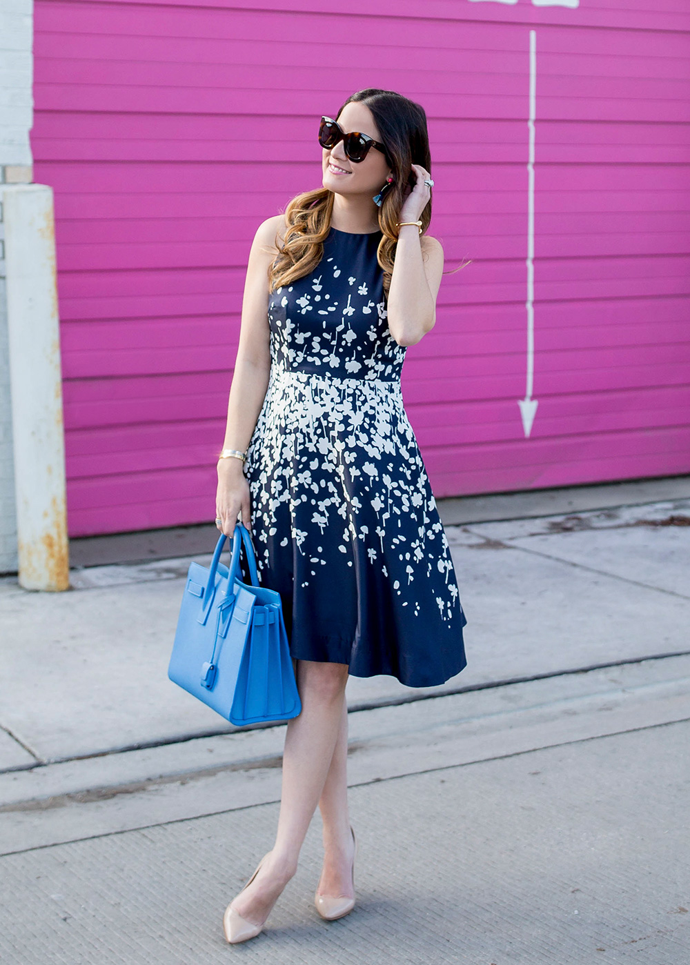Dress: Navy Floral Fit and Flare Dress {c/o} {also available here + here}