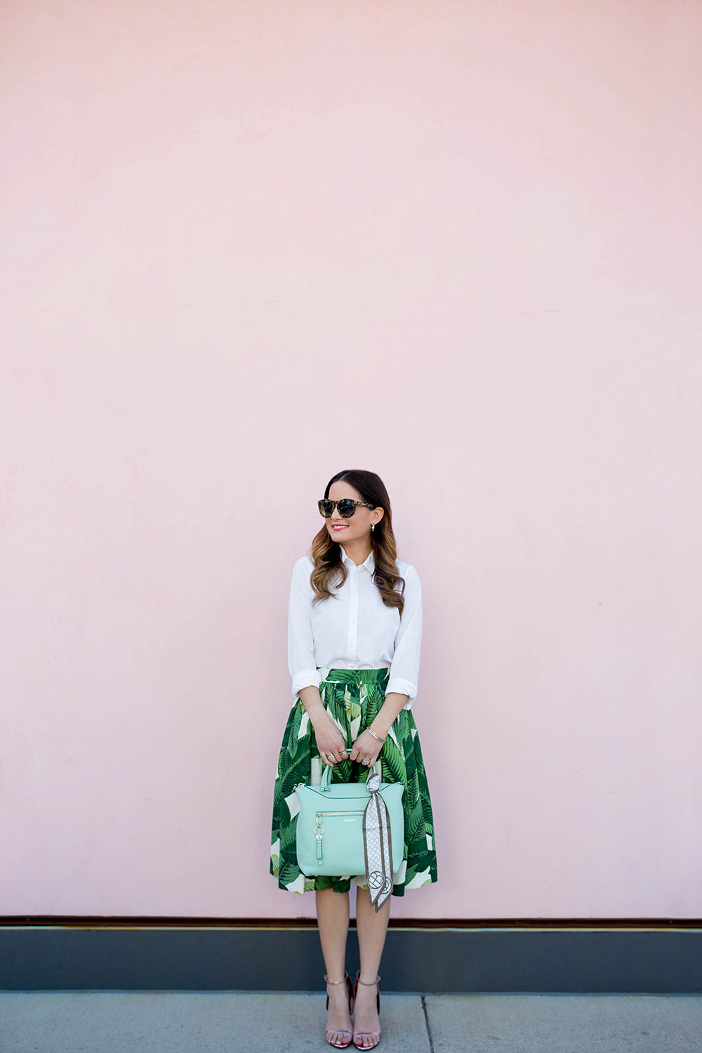 Skirt: Party Skirts Palm Print Midi Skirt {last worn here} // Top: White Collared Shirt