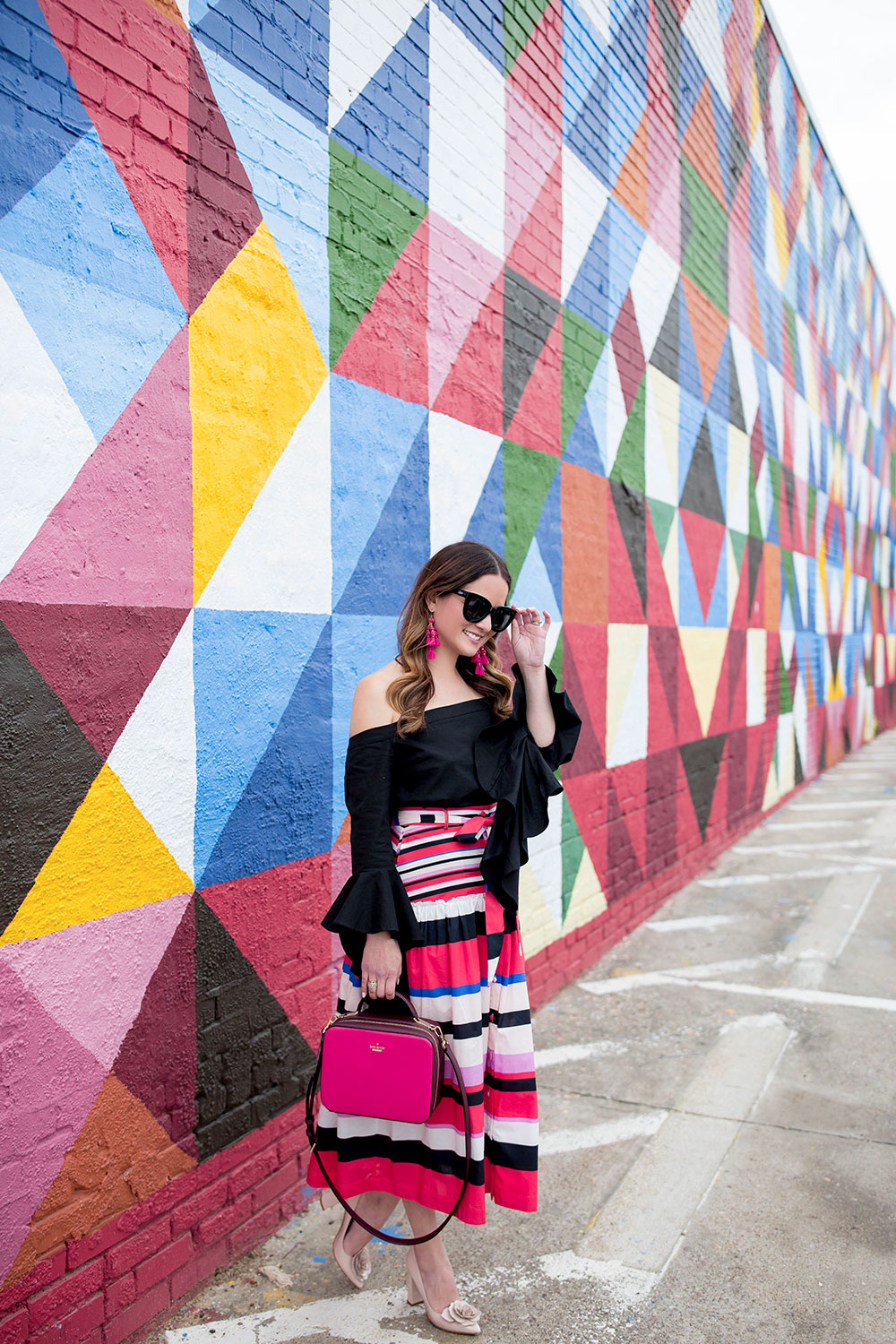 Skirt: N Nicholas Stripe Midi Skirt // Top: MLM Label Black Off Shoulder Top